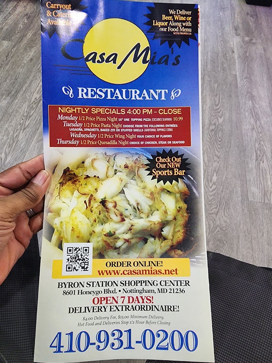 Welcome to Casa Mia's White Marsh, a beloved culinary gem located at 8601 Honeygo Blvd, Nottingham, MD. This inviting establishment offers a delightful blend of American and Italian cuisine, ideal for every occasion. Customers rave about the mouthwatering chicken cheesesteaks and lump crab cakes, while other artisanal dishes promise freshness and flavor.